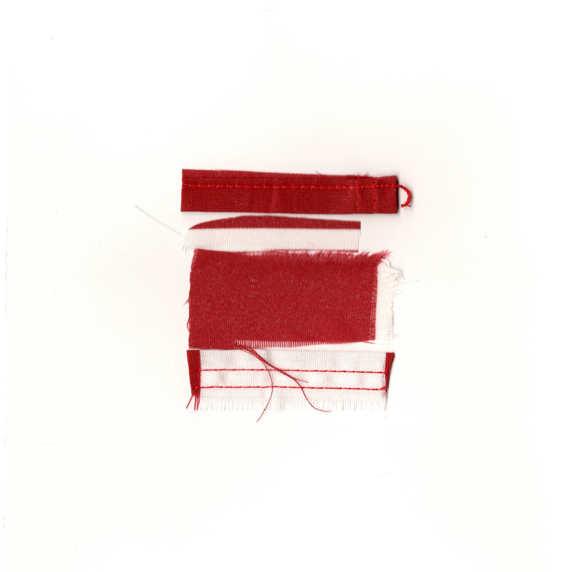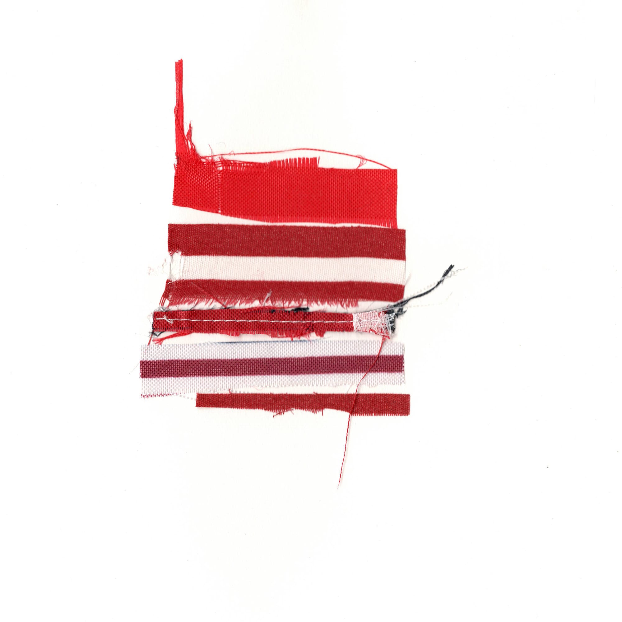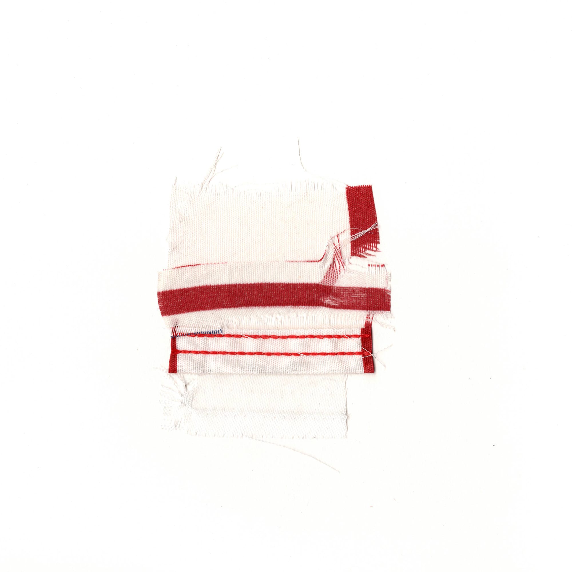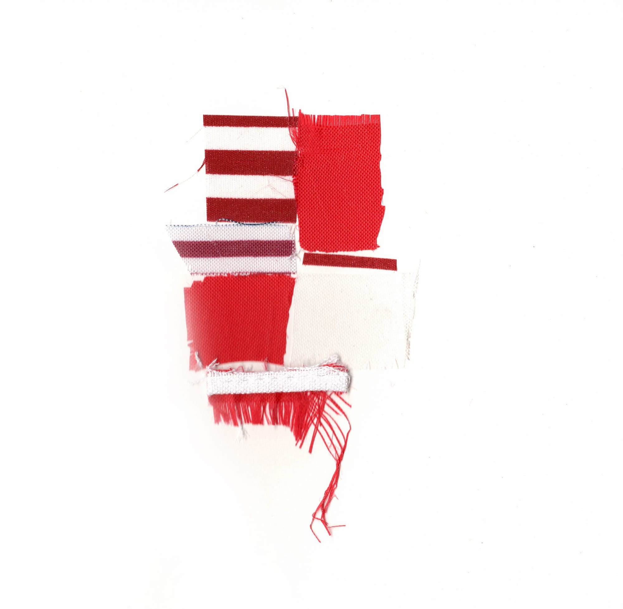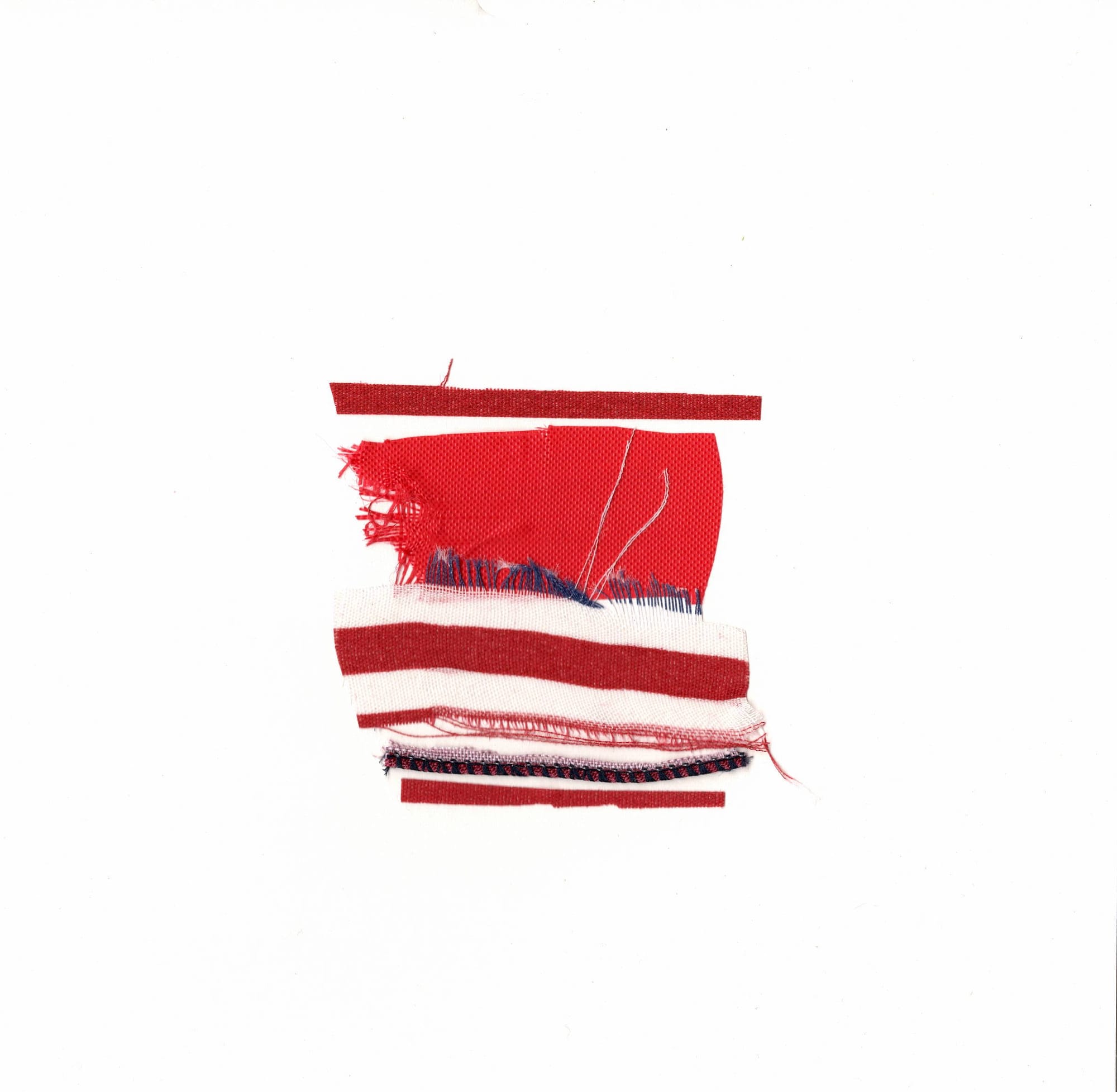Ransom Note 1-6, 2025. Printed cotton, nylon, and polyester mounted on paper 8 x 8”