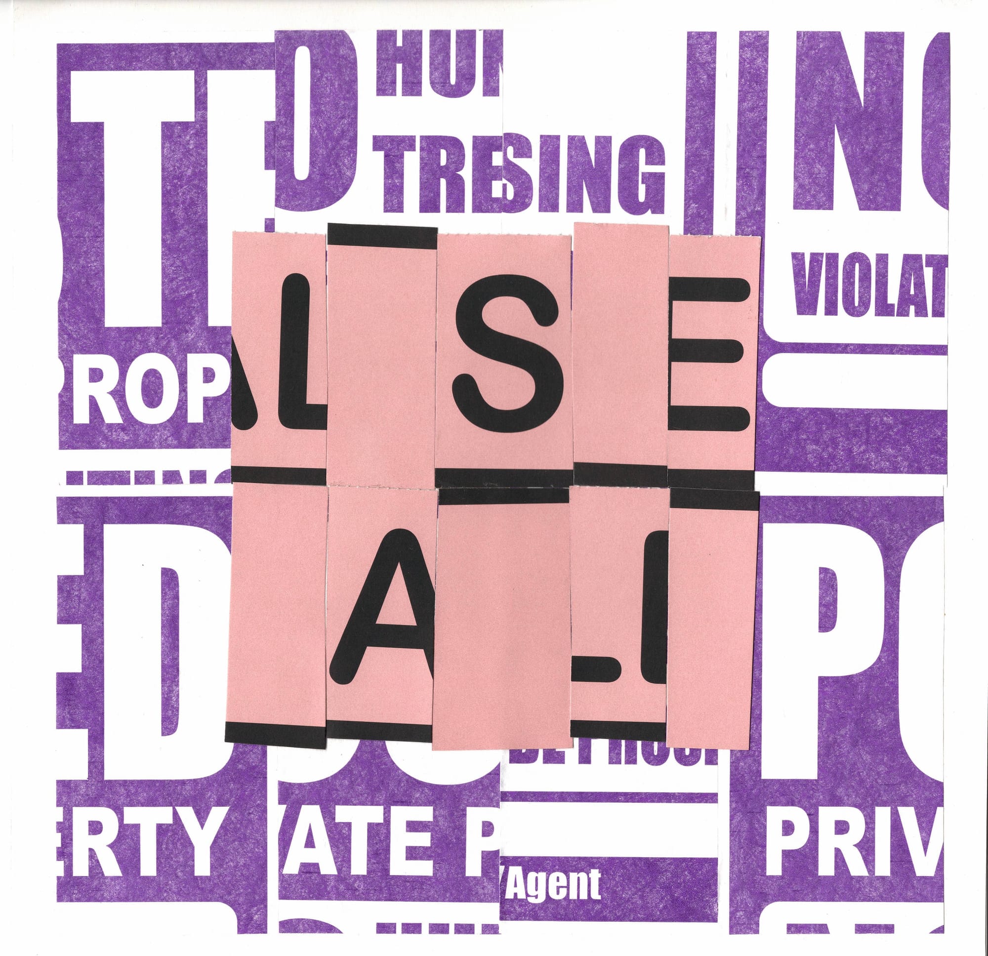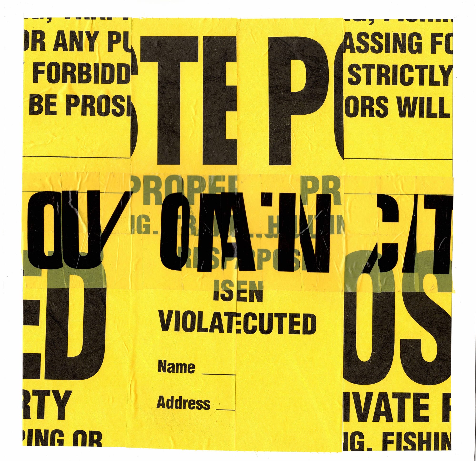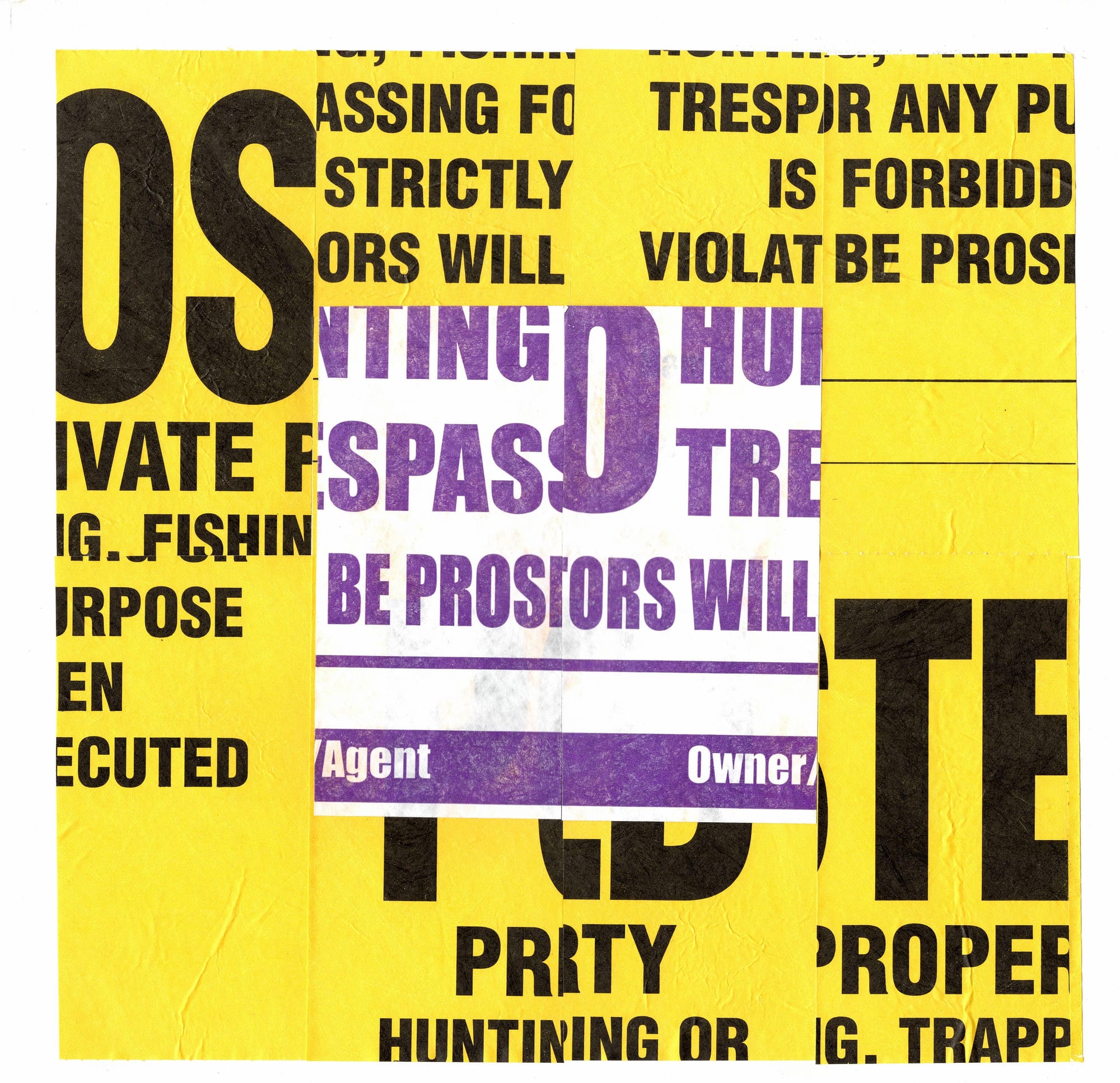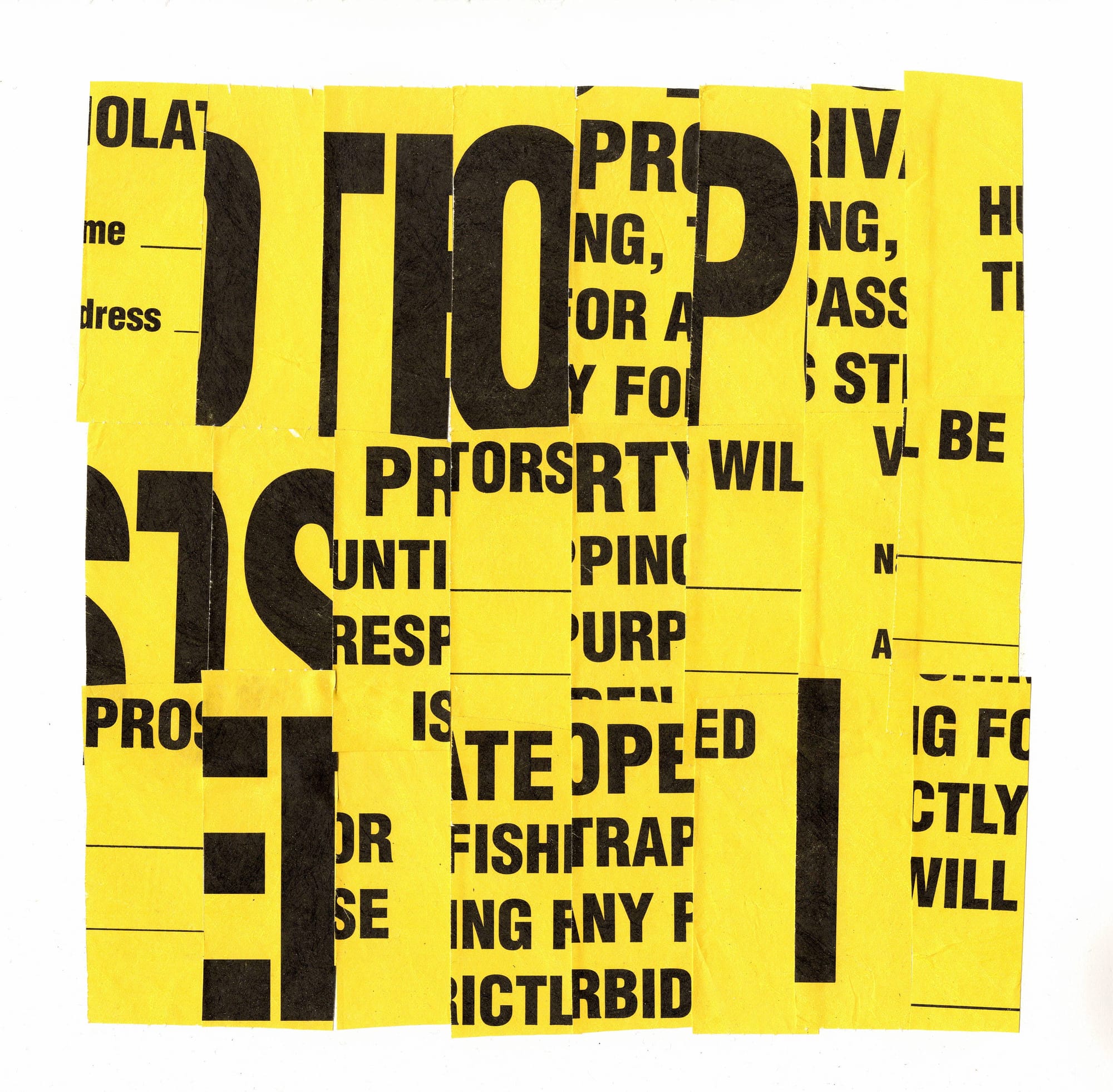 I cut and chopped; arranged and rearranged until the signs’ original information began to dissolve. Their homogenous format became scrambled, and a new visual rhythm began to emerge. They looked familiar, but at the same time made anew.
