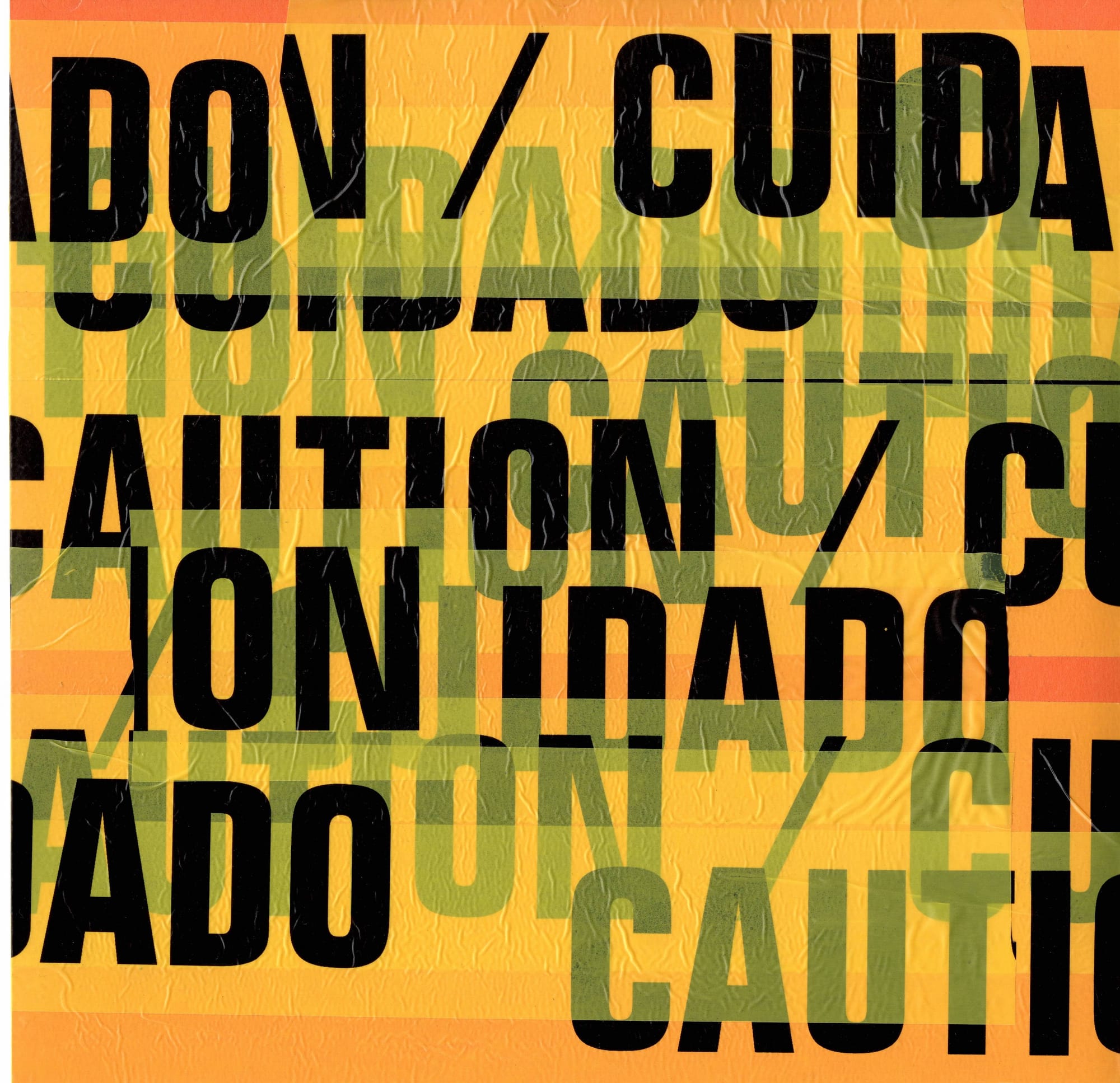 "Mixed Signal (1-6)" Printed Tyvek, caution tape, and plastic mounted on paper. 12x12" each. 2025