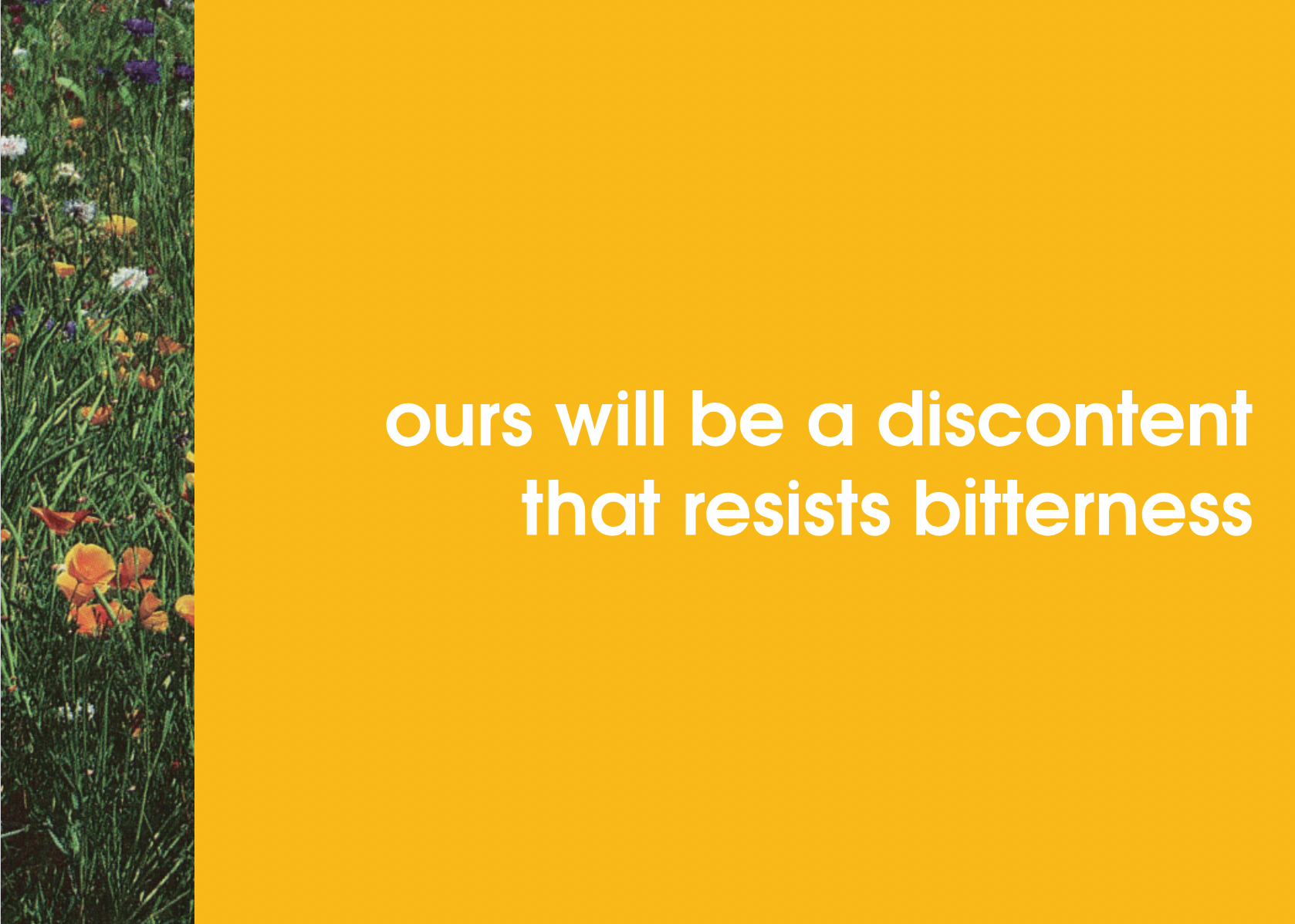 Ours will be a discontent that resists bitterness.